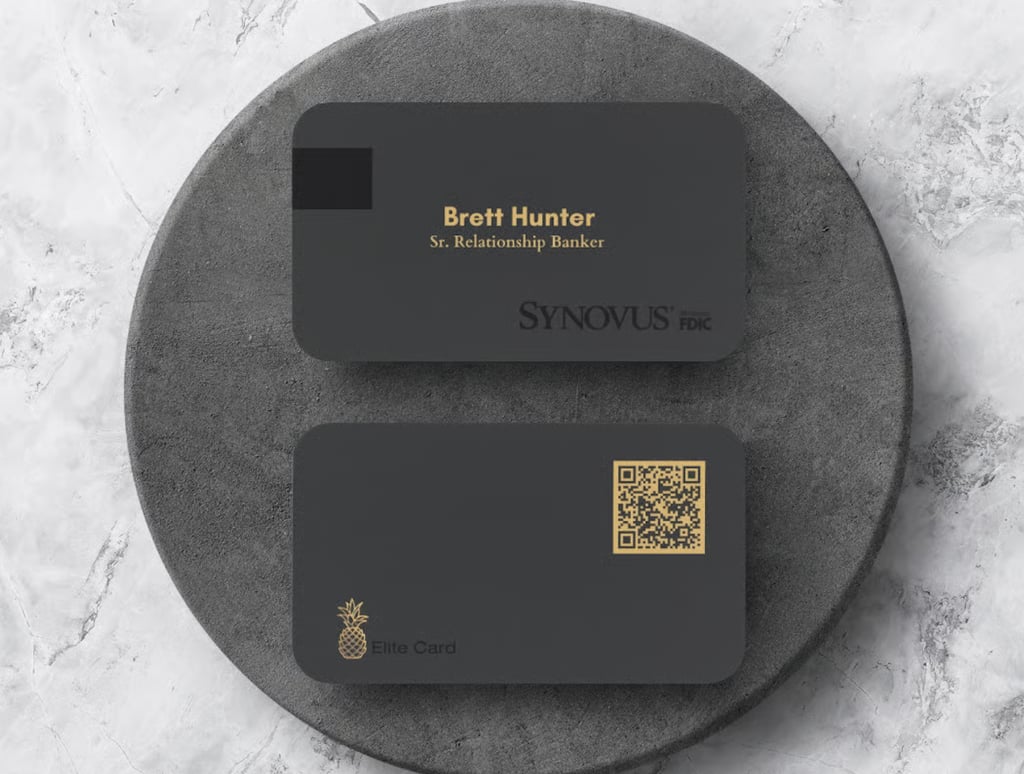 Owner, Travis Craig & his six team members are set-up with Elite Contact Cards. Featuring our Matte Black & Gold Ribbon Design.